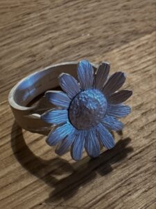 Att skapa ett smycke kan ta timmar till dagar, att kombinera material samt form och sten. Stenen till höger är en "stor" Ametist på 3x2 cm.